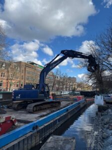 Aan de Singelgracht, in hartje centrum Amsterdam, zijn we gestart met onze werkzaamheden. Het gaat om een stuk van 178 meter kade dat de komende