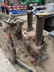 In het centrum van Amsterdam werken we aan de renovatie van de eeuwenoude Snoekjesbrug. De houten fundering is in slechte staat en wordt vervangen. Nieuwe