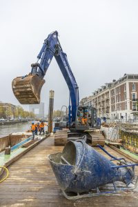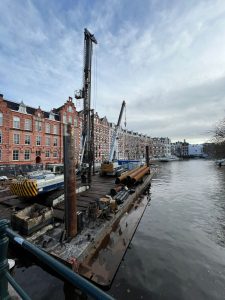 Aan de Singelgracht, in hartje centrum Amsterdam, zijn we gestart met onze werkzaamheden. Het gaat om een stuk van 178 meter kade dat de komende