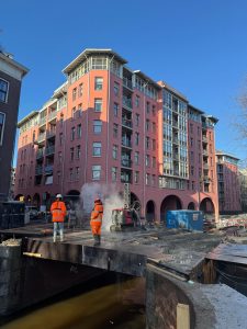 In het centrum van Amsterdam werken we aan de renovatie van de eeuwenoude Snoekjesbrug. De houten fundering is in slechte staat en wordt vervangen. Nieuwe
