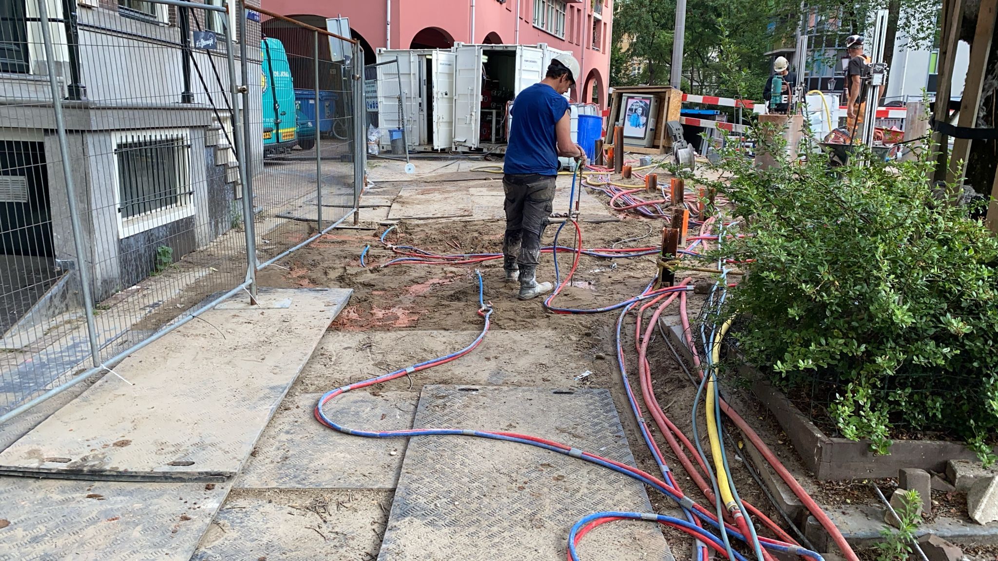 Voor het versterken van de landhoofden zullen we in een later stadium een bouwkuip ontgraven. Om ervoor te zorgen dat er veilig in deze bouwkuip gewerkt kan worden, is B&P Bodeminjectie momenteel bezig met een waterglas injectie onder de rijbaan. Tegelijkertijd boort De Jong Betonboringenย gaten door de brug en de brugvleugels, waar we na de bouwvak schroefinjectiepalen van ruim 20 meter in gaan schroeven.