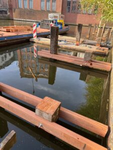 In opdracht van GF Deko zijn we in het centrum van Amsterdam bezig met het verlengen van de bestaande steiger bij Gassan. In totaal wordt er een stuk van 30 meter aan de steiger toegevoegd.