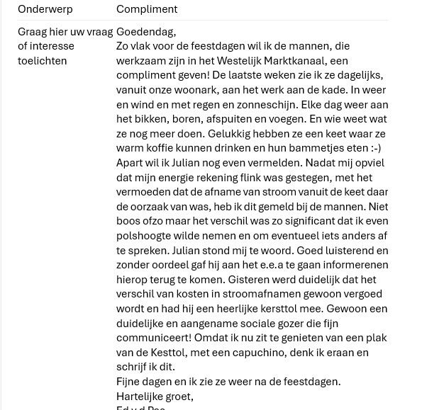 Leuk om te vermelden: via het contactformulier op onze website ontvingen we een compliment voor onze jongens op het werk. Altijd fijn om te horen dat het werk Ên de manier waarop gezien wordt. Complimenten aan Julian, Benno en Nico!