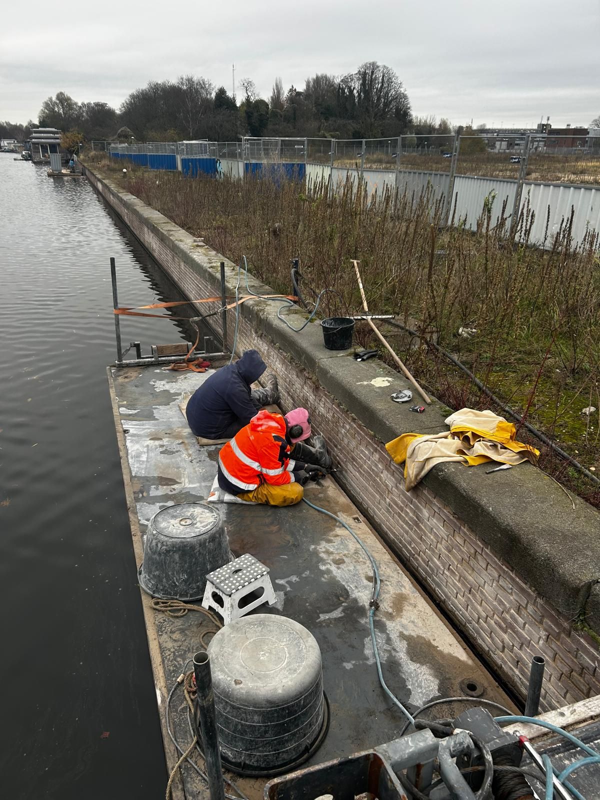 Aan het Westelijk Marktkanaal zijn we onlangs gestart met het reinigen van het metselwerk en het uithakken van de bestaande voegen. Komende tijd vervolgen we het werk met het verwijderen van de dekstenen, het aanbrengen van een nieuw kwelscherm (Prolock) en het opnieuw voegen van het metselwerk. Daarna plaatsen we de nieuwe betonnen dekstenen terug.