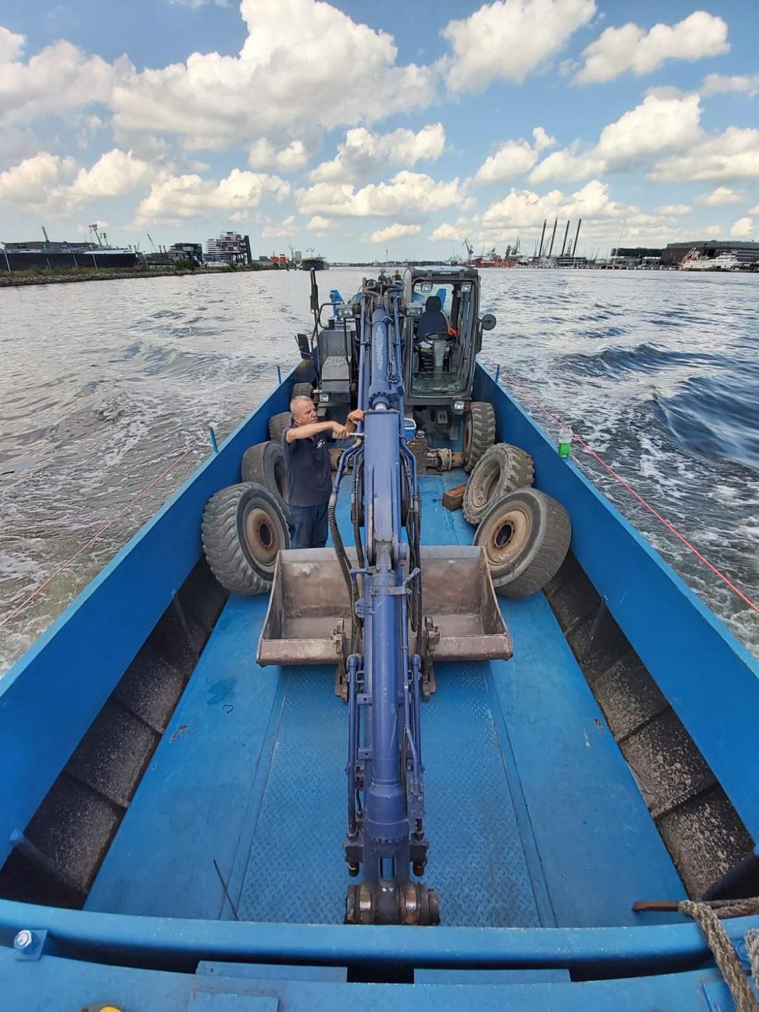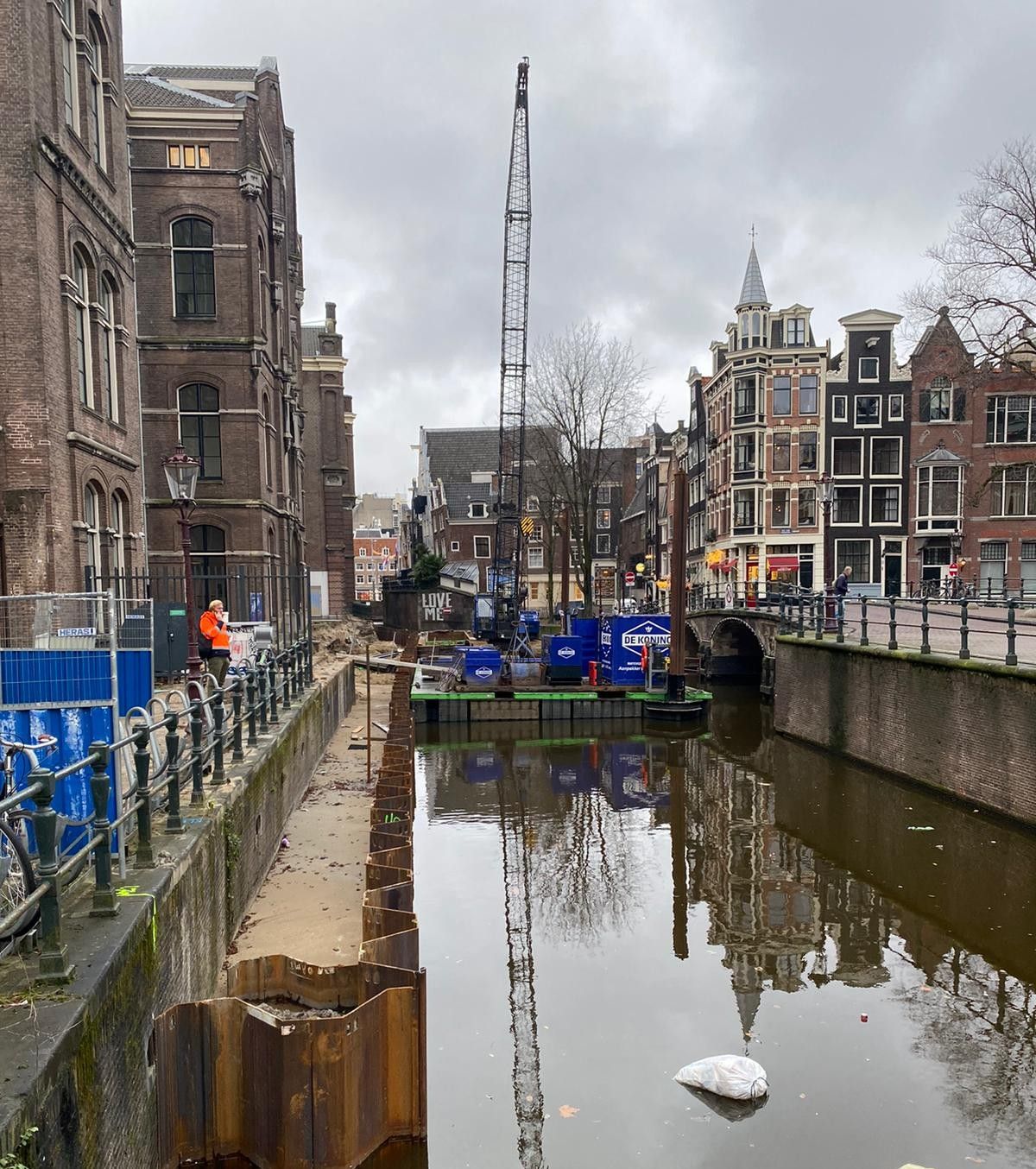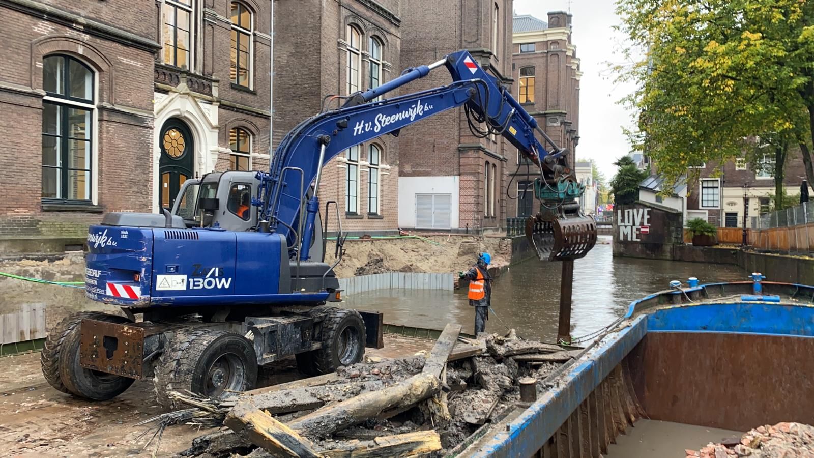 Diezelfde middag hebben we alles op alles gezet om het gebied af te zetten met hekken en werden de vaarroutes afgesloten. De volgende ochtend werd onze mobiele kraan via het water en onder kleine bruggetjes door aangevoerd. Daarvoor moesten zelfs de banden van de kraan worden verwijderd, om zo in een verdiepte bak overal onderdoor te passen. De hele nacht werd doorgewerkt om de situatie zo snel mogelijk veilig te stellen.